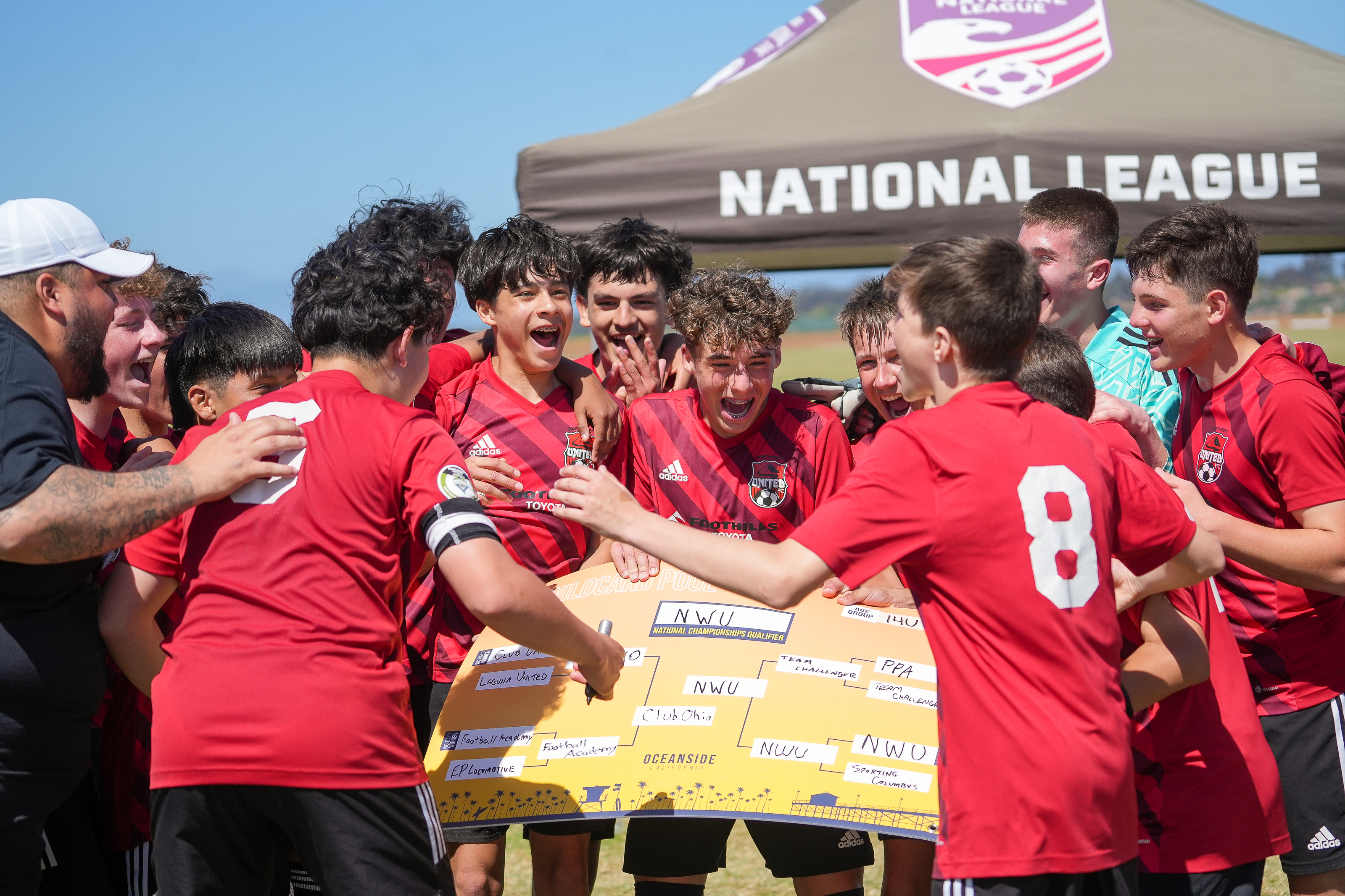 Teams that won their league and the champions pool at National League P.R.O. (13): Columbus United 10G Lions (OH), Las Vegas Surf SC 09G Elite 64 (NV), MIFC 09G NL (FL), Ambassadors FC 08G (OH), Nationals Union 07G Black (MI), Utah Surf 07G Hale (UT), DASC 05G Black (SD), Los Angeles SC 09B Elite 64 (CA-S), Sporting PA 09B (PA-E), Kansas Rush Academy 08B (KS), Toca FC 08B Elite 64, Hoosier FC 07B Elite Wolves I (IN), Indiana Fire 05B NL (IN)